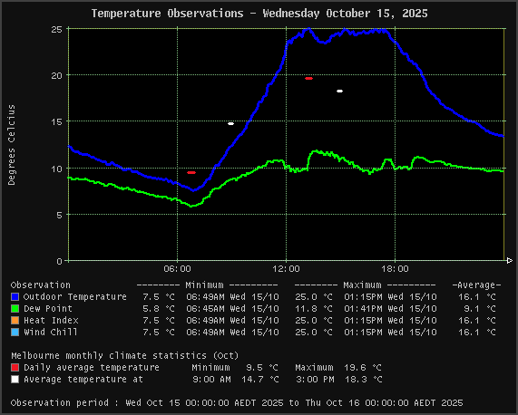 | Wind Chill | 7.5 °C | 25.0
