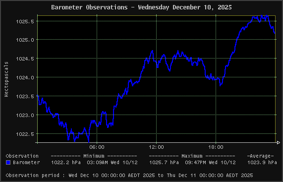 | Barometer | 1022.2 hPa | 1025.7