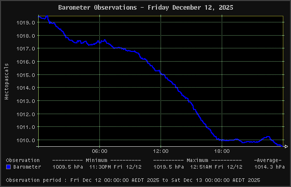 | Barometer | 1009.5 hPa | 1019.5