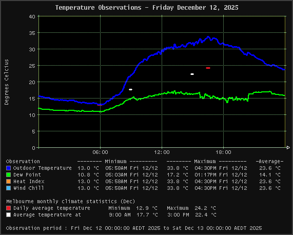 | Wind Chill | 13.0 °C | 33.8