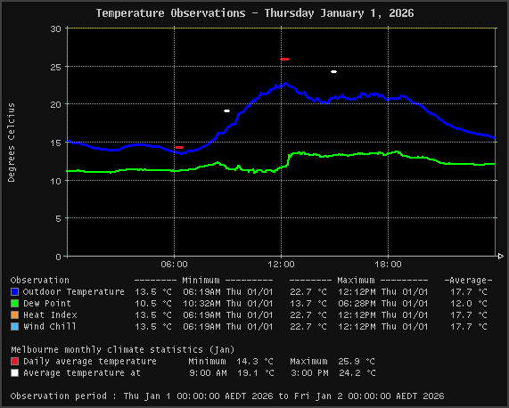 | Heat Index | 13.5 °C | 22.7