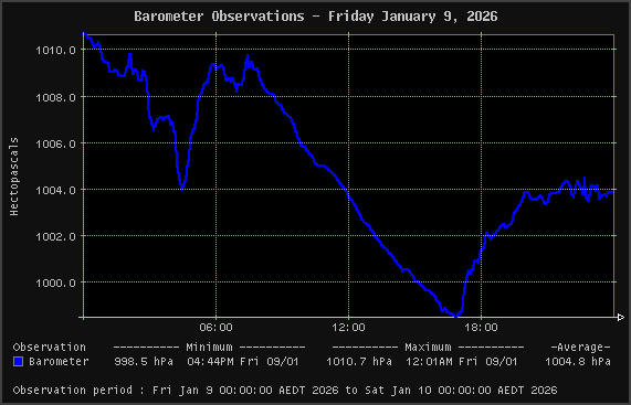 | Barometer | 998.5 hPa | 1010.7