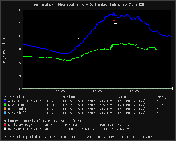 | Temperature | 13.2 °C | 29.0