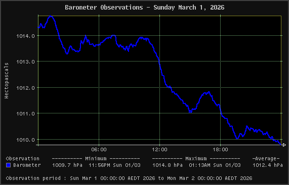 | Barometer | 1009.7 hPa | 1014.8