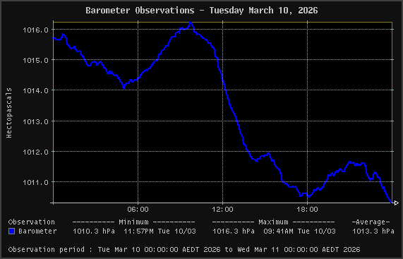 | Barometer | 1010.3 hPa | 1016.3