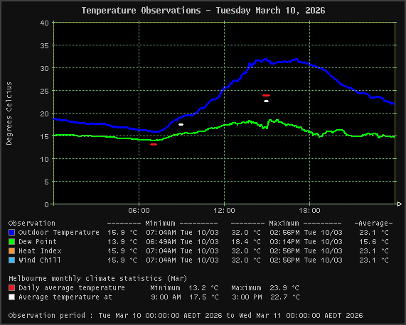 | Temperature | 15.9 °C | 32.0